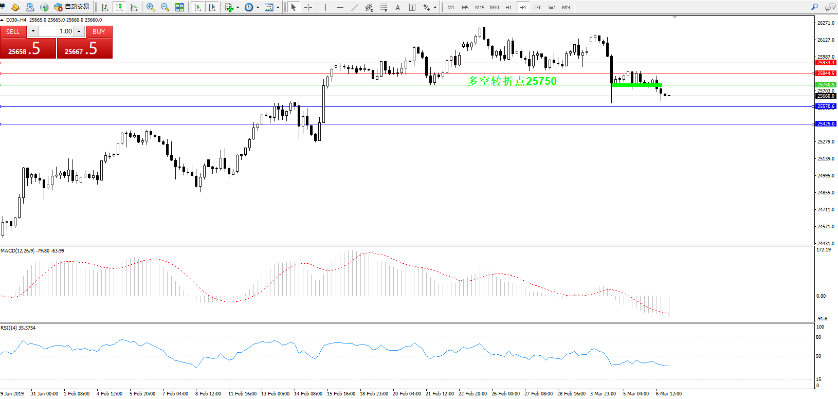 交易策略:25750下方看跌,目标25570、25425