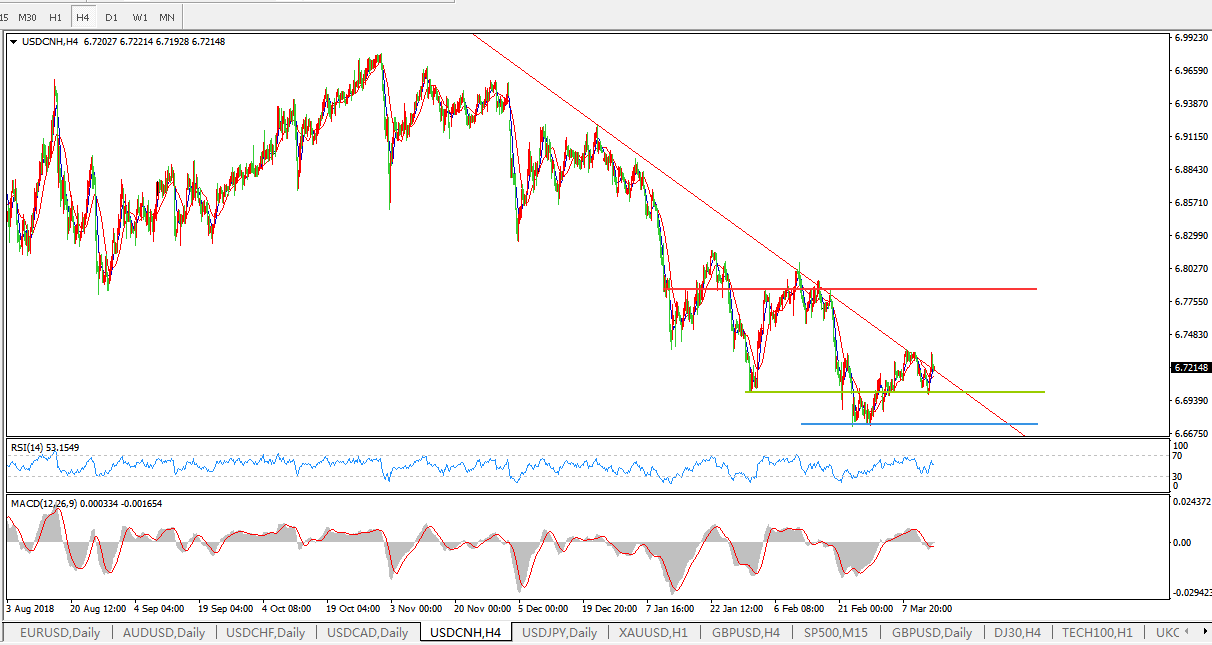 备选策略: 6.6990之下,看跌,目标价位为6.6730,然后为6.6325