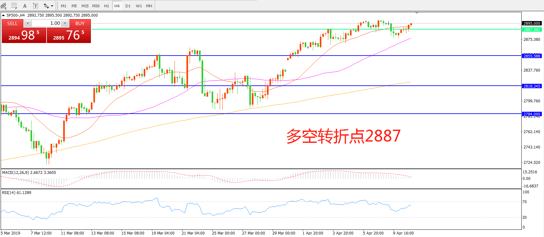 美联储会议纪要显示,联储官员认为当前的风险保证了今年以内都不加息,但为经济改善时更多加息留下空间。经济数据方面,美国3月CPI同比小幅超预期反弹,但仍不足美联储2%的通胀目标。核心CPI同比增长2%,低于预期和前值2.1%,也无法对早盘的美股指数形成有效提振。市场迎接财报季,标普涨0.36%,报2894.75点.