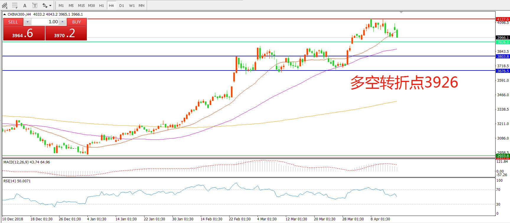 4小时图看,中华指数阳两度触碰上方阻力后出现回落,整体来看上方阻力较强,重点关注2926一线得失。 均线系统呈多头排列,MACD红柱减少,RSI指标拐头,日内延续震荡概率较大。