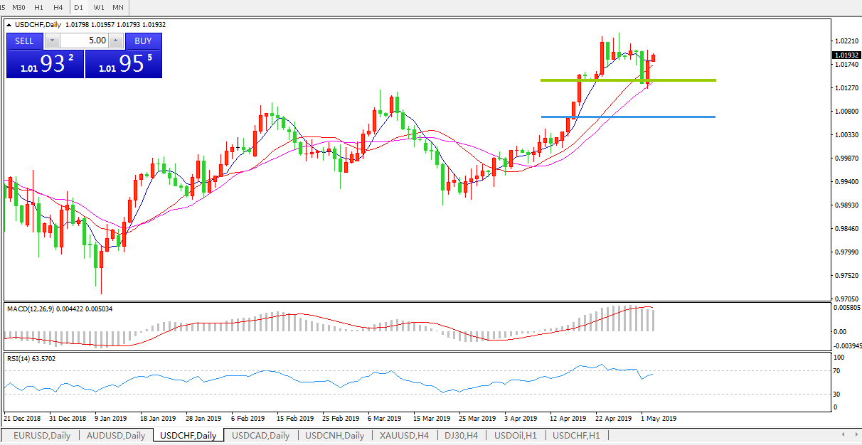 交易策略:在1.0150之上,看涨,目标价位为 1.0250,然后为1.0340。