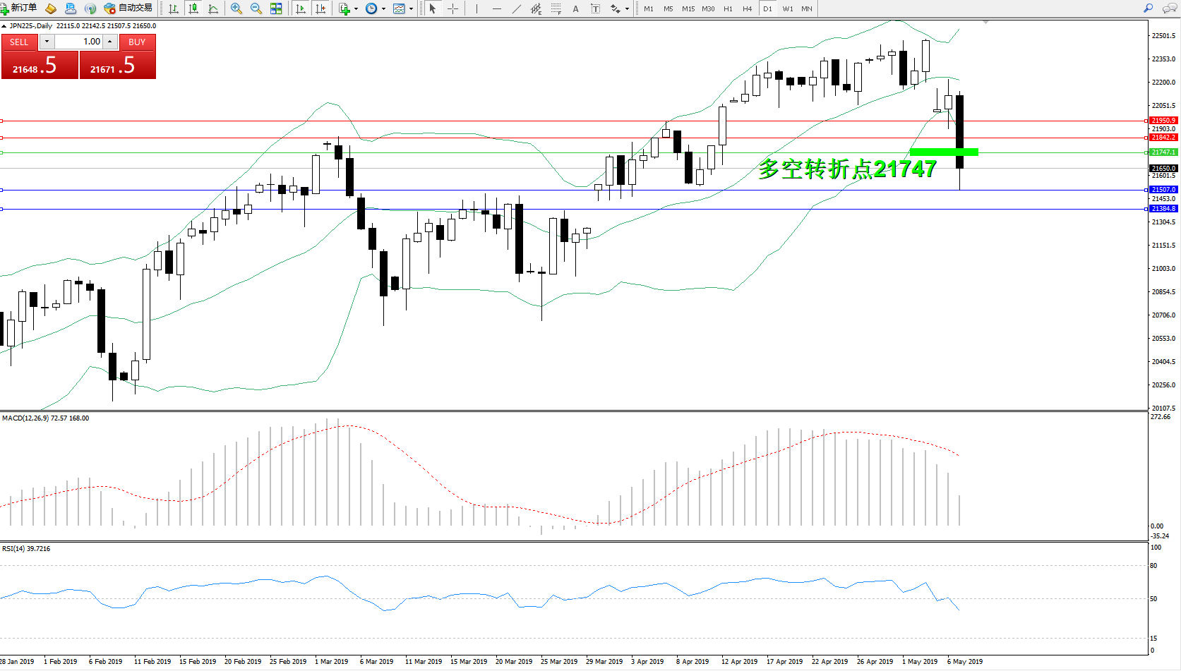 日本股市在星期二走低,其中造船业、运输设备和海运等下跌的板块带领股指走低。日经225指数在休市10天后的首个交易日跌1.51%,收于21,923.72,尽管数据显示,日本制造业三个月来首次扩张。中美全面经济对话中方牵头人刘鹤将于5月9日至10日访美,与美方就经贸问题进行第十一轮磋商。日本4月日经/Markit制造业PMI由3月的49.5升至50.2,超过预期的49.5,自今年1月以来,首次重返枯荣线上方。