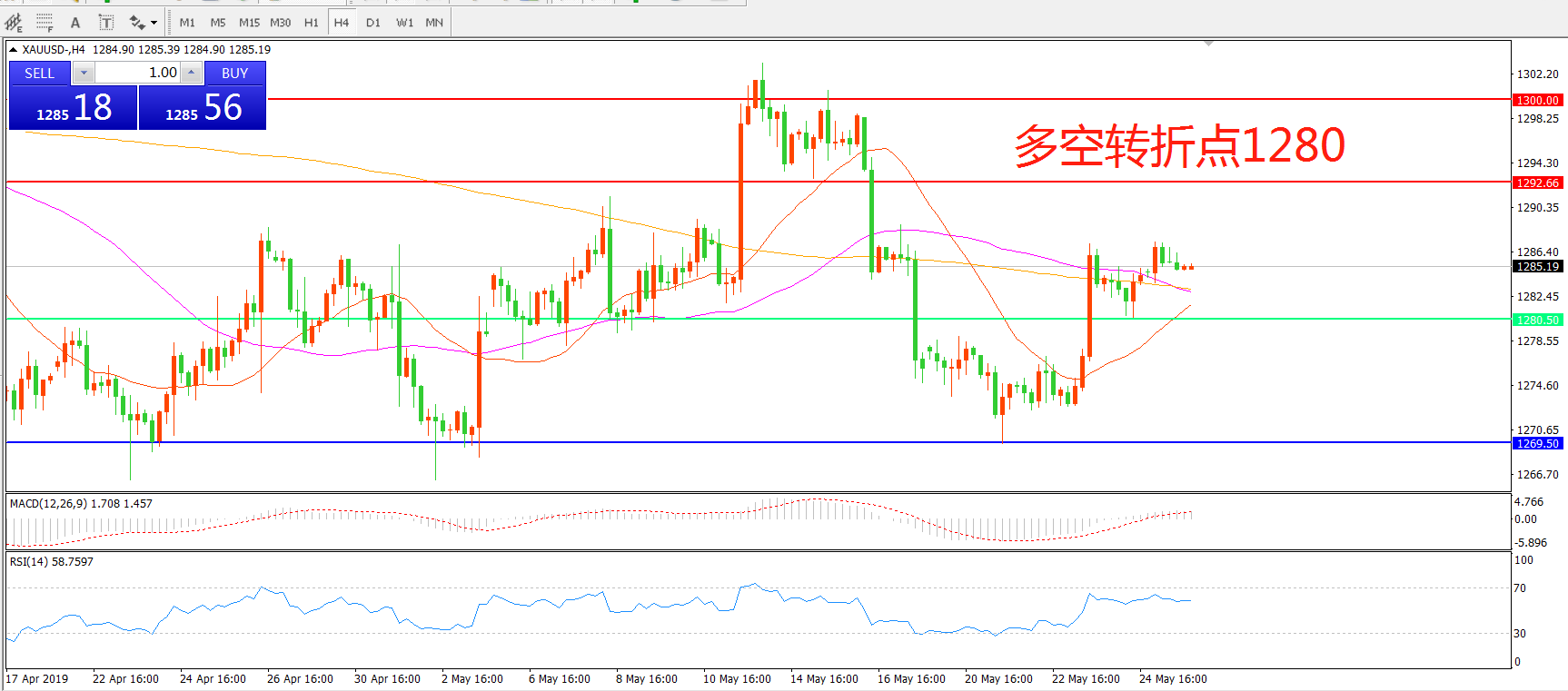 交易策略:在1280.50之上看涨,目标1292.00 1300.00