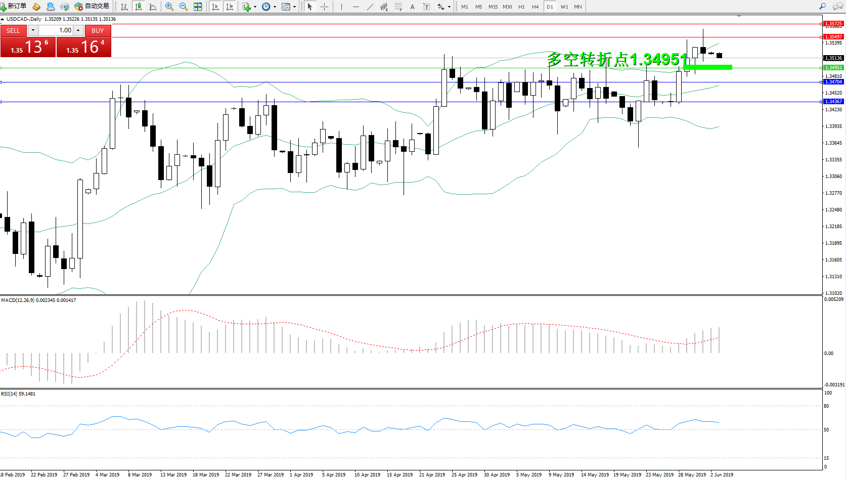 交易策略:1.34951上方看涨,目标1.35497、1.35725