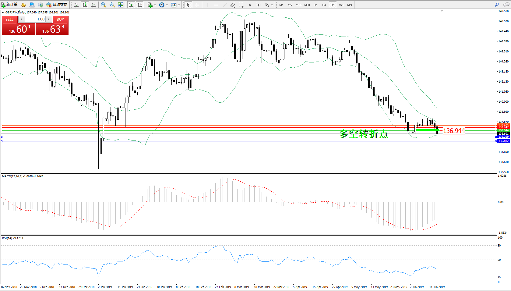 交易策略:136.944下方看跌,目标136.269135.812