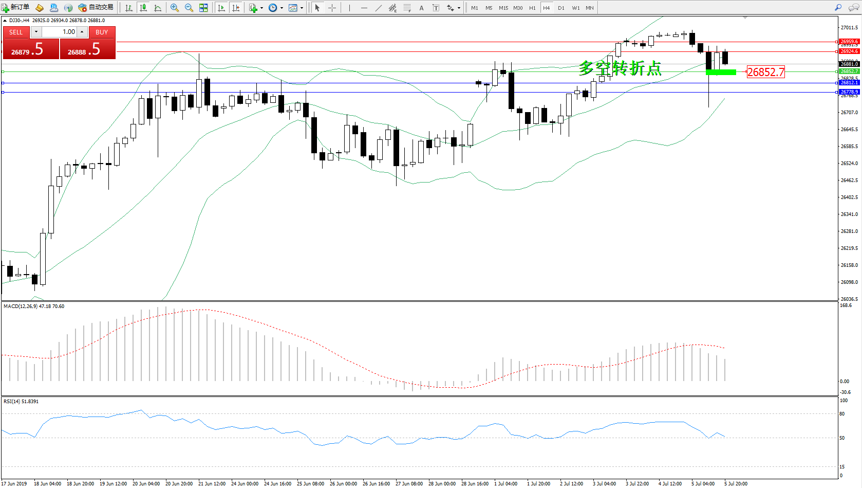 道琼斯工业平均指数周五收盘下跌38.69点,跌幅0.14%,报26927.31点。中美贸易对峙降温明显提振美元多头人气,美国6月份就业增长强劲反弹,新增非农就业岗位达22.4万,远超预期的增长16万。美国每月仅需创造10万个就业岗位,就能有效吸收适龄劳动人口增量。美联储7月降息50个基点的预期遭到压制,美国经济在今年上半年继续稳健增长,但最近几个月可能会削弱,因为关税上升抑制了全球贸易,造成商业投资疲软。