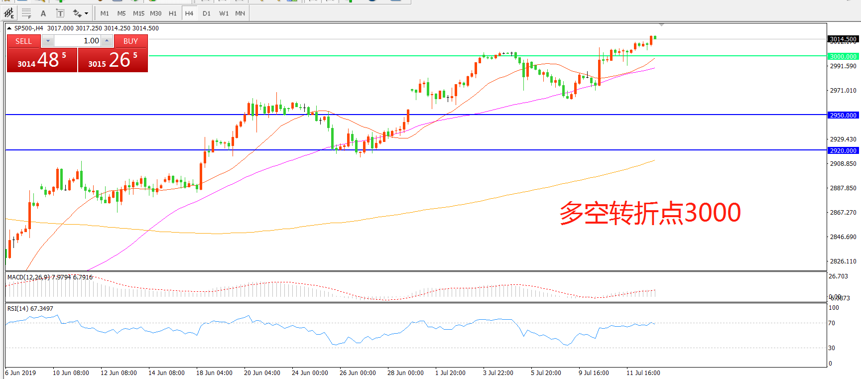 多空转折点:3000.00