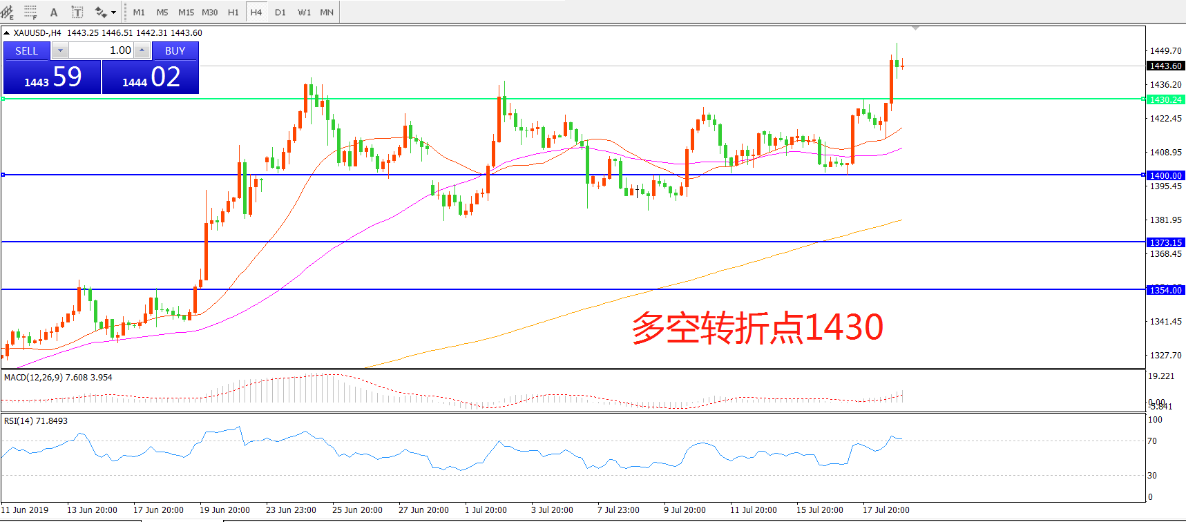 交易策略:在1430.00之上看涨,目标1450.00 1500.00