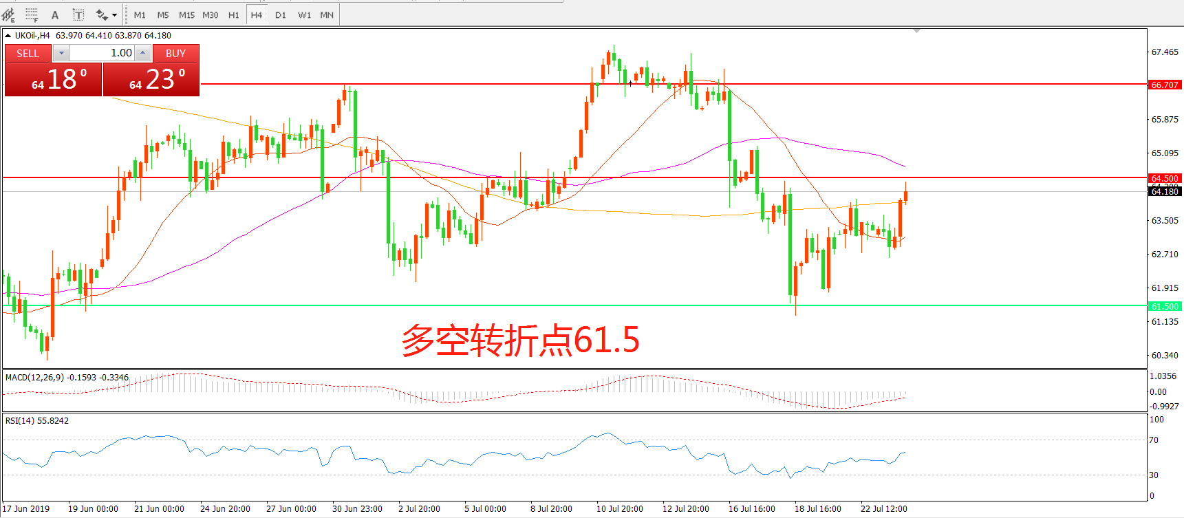 交易策略:在61.50之上看涨,目标64.50 66.70