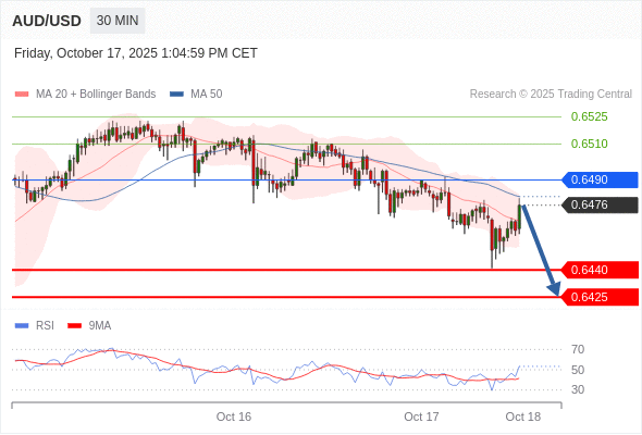 在 0.6490 之下,看跌,目标价位为 0.6440 ,然后为 0.6425 。