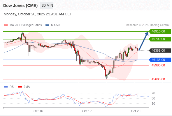 在 46135.00 之上,看涨,目标价位为 46700.00 ,然后为 46910.00 。
