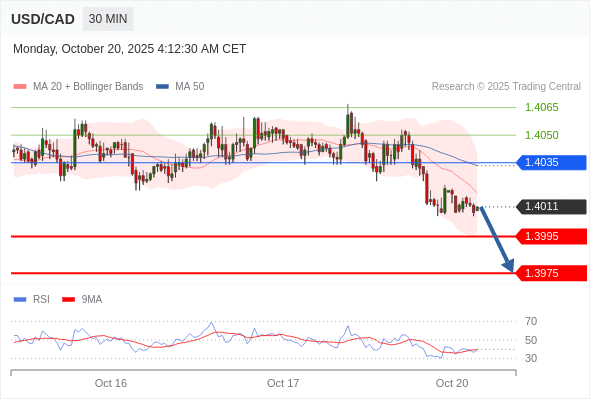 在 1.4035 之下,看跌,目标价位为 1.3995 ,然后为 1.3975 。