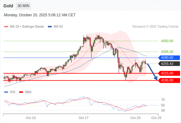 黄金现货 当日内: 短期关键阻力位在4280.00。