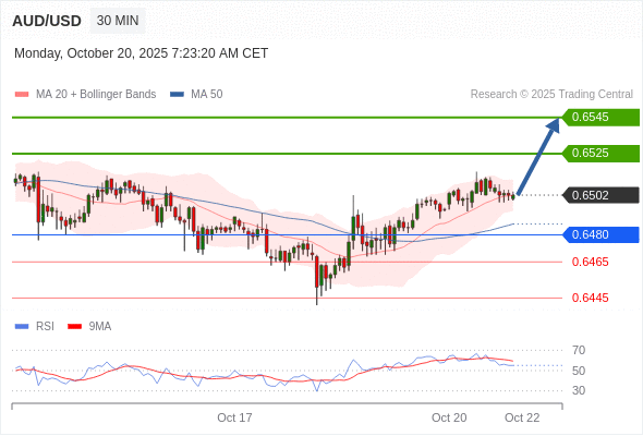 在 0.6480 之上,看涨,目标价位为 0.6525 ,然后为 0.6545 。