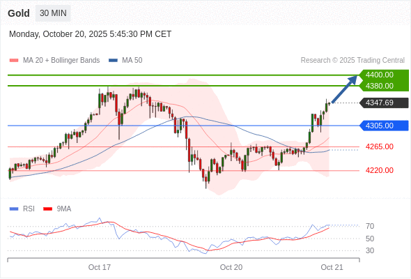 在 4305.00 之上,看涨,目标价位为 4380.00 ,然后为 4400.00 。