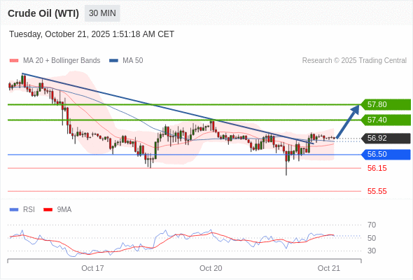 在 56.50 之上,看涨,目标价位为 57.40 ,然后为 57.80 。