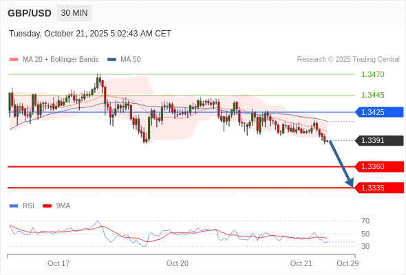 在 1.3425 之下,看跌,目标价位为 1.3360 ,然后为 1.3335 。