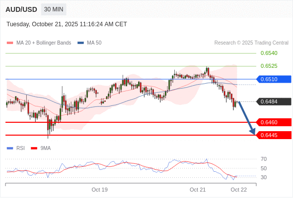 在 0.6510 之下,看跌,目标价位为 0.6460 ,然后为 0.6445 。