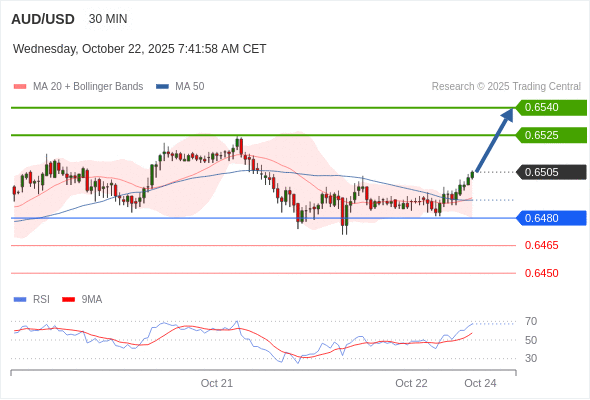 在 0.6480 之上,看涨,目标价位为 0.6525 ,然后为 0.6540 。