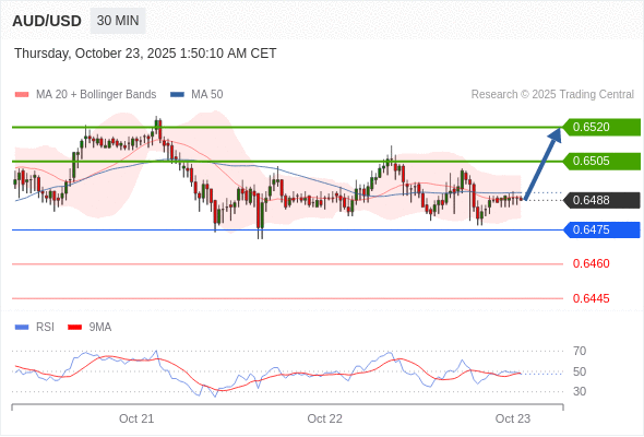 在 0.6475 之上,看涨,目标价位为 0.6505 ,然后为 0.6520 。