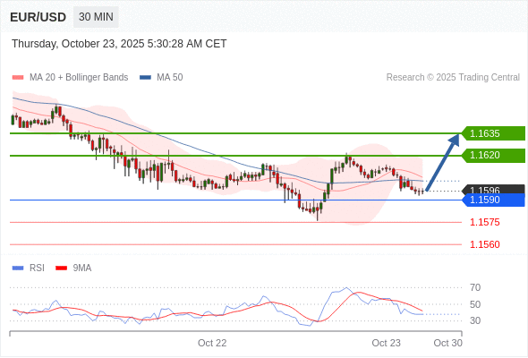 在 1.1590 之上,看涨,目标价位为 1.1620 ,然后为 1.1635 。