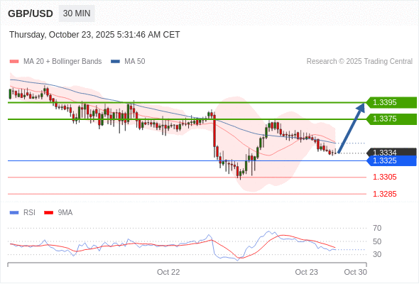 在 1.3325 之上,看涨,目标价位为 1.3375 ,然后为 1.3395 。