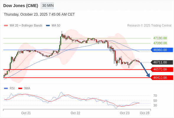 交易策略: 在 46960.00 之下,看跌,目标价位为 46570.00 ,然后为 46410.00 。
