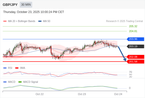 交易策略:看跌,在 203.96 之下。