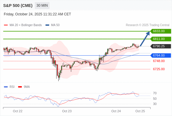 在 6764.00 之上,看涨,目标价位为 6811.00 ,然后为 6833.00 。