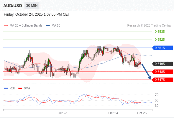 在 0.6515 之下,看跌,目标价位为 0.6485 ,然后为 0.6475 。