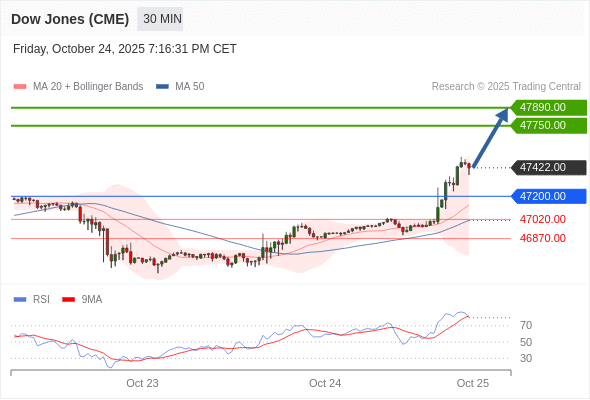 在 47200.00 之上,看涨,目标价位为 47750.00 ,然后为 47890.00 。