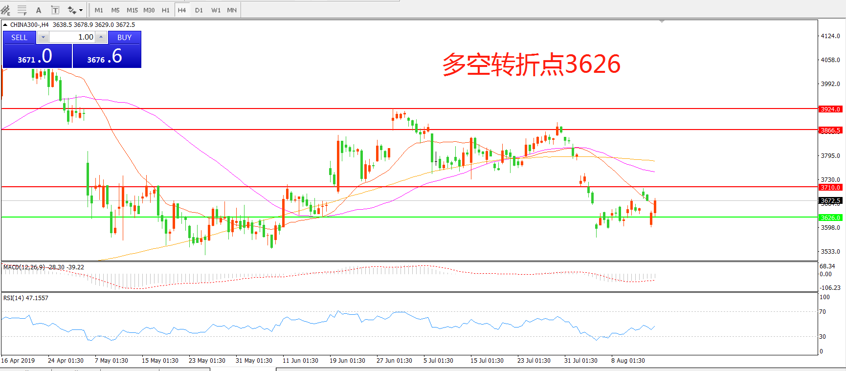 4小时图看,沪深300指数震荡反弹 ,整体走势有所回暖,均线系统有拐头迹象,MACD绿柱走平,日内延续震荡概率较大