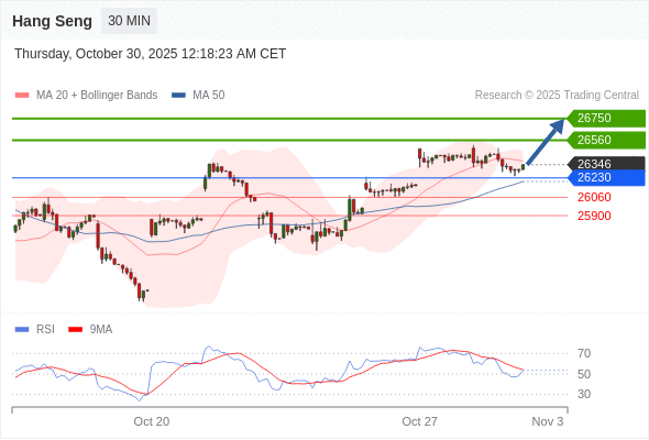 在 26230 之上,看涨,目标价位为 26560 ,然后为 26750 。