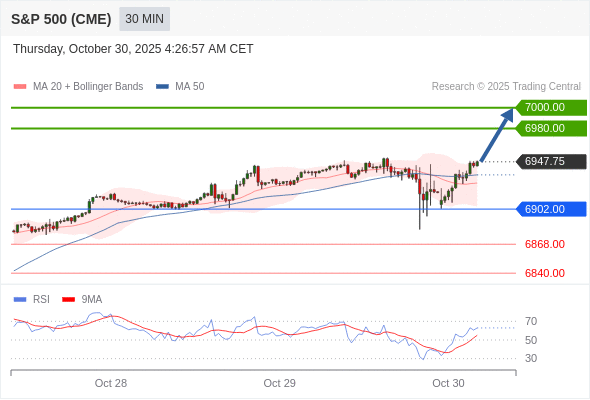 在 6902.00 之上,看涨,目标价位为 6980.00 ,然后为 7000.00 。