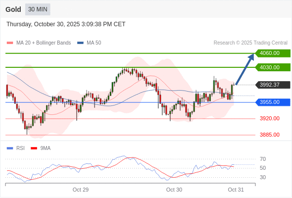 在 3955.00 之上,看涨,目标价位为 4030.00 ,然后为 4060.00 。