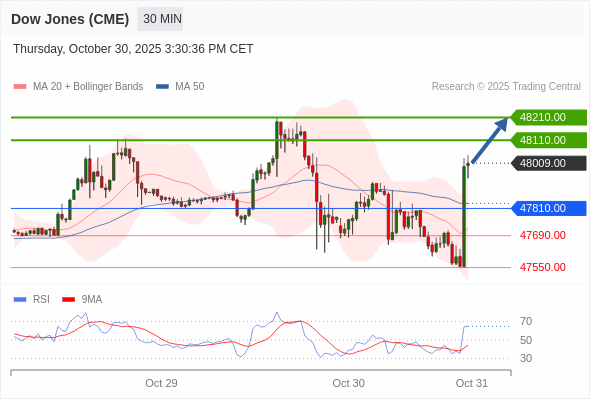 在 47810.00 之上,看涨,目标价位为 48110.00 ,然后为 48210.00 。