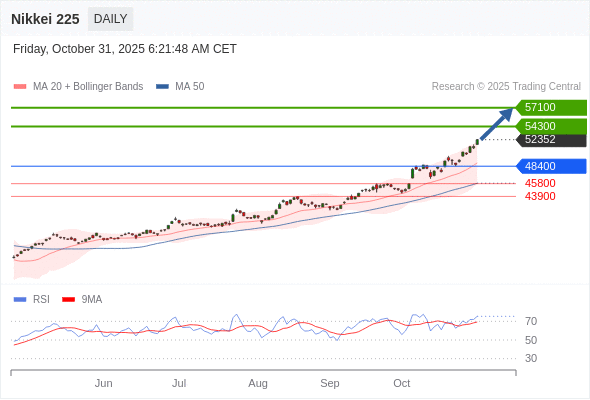 Nikkei 225 短线: 目标位为57100。