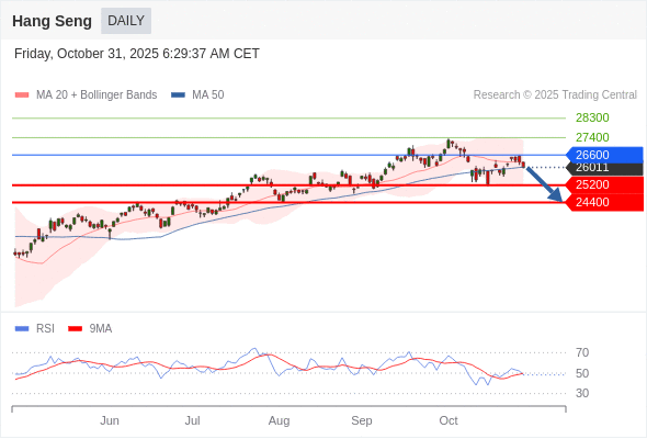 在 26600 之下,看跌,目标价位为 25200 ,然后为 24400 。