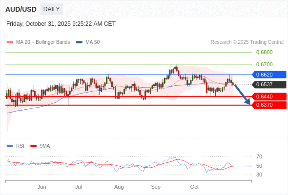 交易策略: 在 0.6620 之下,看跌,目标价位为 0.6440 ,然后为 0.6370 。