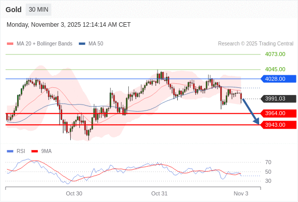 在 4028.00 之下,看跌,目标价位为 3964.00 ,然后为 3943.00 。