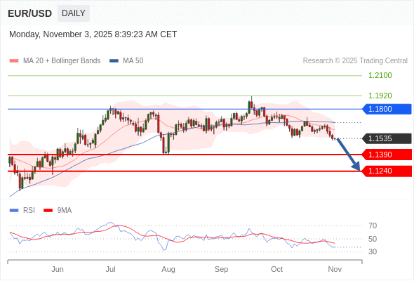 交易策略: 在 1.1800 之下,看跌,目标价位为 1.1390 ,然后为 1.1240 。