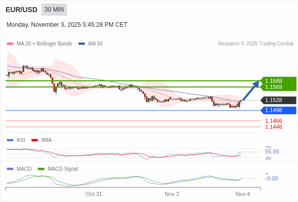 欧元/美元 当日内 : 看涨,当 1.1498 未被跌破。