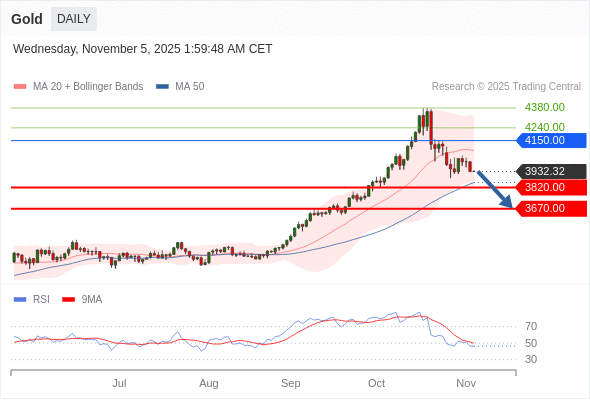 交易策略: 在 4150.00 之下,看跌,目标价位为 3820.00 ,然后为 3670.00 。
