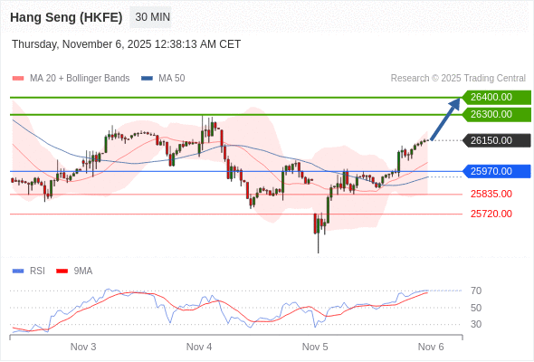 交易策略: 在 25970.00 之上,看涨,目标价位为 26300.00 ,然后为 26400.00 。