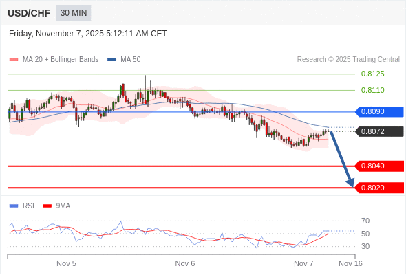 在 0.8090 之下,看跌,目标价位为 0.8040 ,然后为 0.8020 。