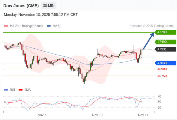 在 47030 之上,看涨,目标价位为 47490 ,然后为 47700 。