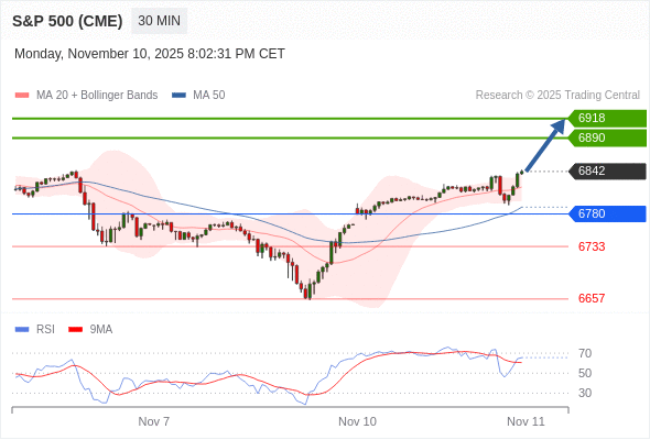 在 6780 之上,看涨,目标价位为 6890 ,然后为 6918 。