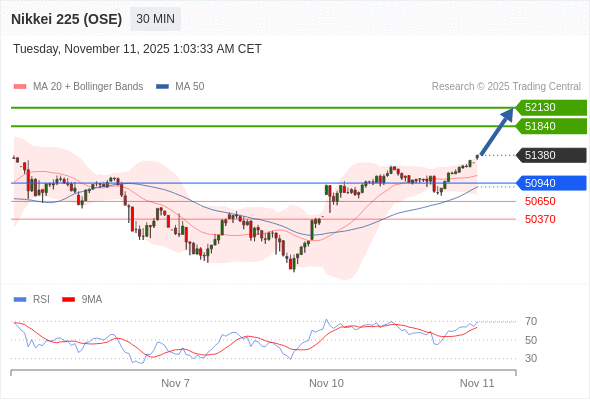 日经225股指期货 (OSE) 当日内: 目标位为51840。
