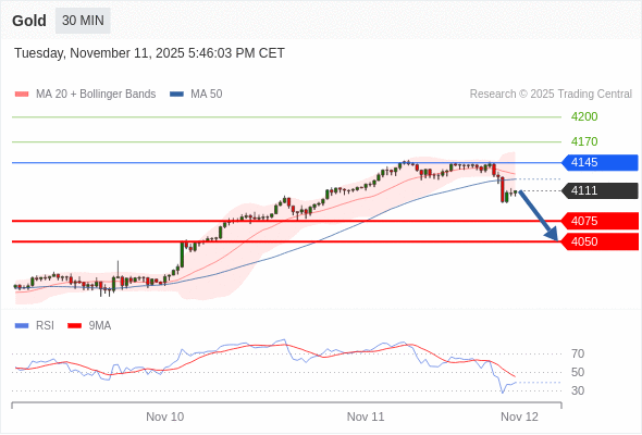 在 4145 之下,看跌,目标价位为 4075 ,然后为 4050 。