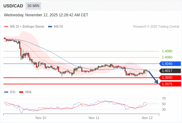 在 1.4040 之下,看跌,目标价位为 1.3995 ,然后为 1.3975 。